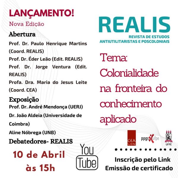Divulgação – REALIS (Revista de Estudos Antiutilitaristas e Pós-Coloniais): Lançamento do número “Colonialidade na fronteira do conhecimento aplicado”